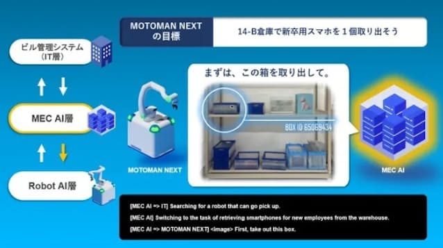 具体的にはソフトバンクのシステムでロボがこなすべき作業をAIで生成して指示し、安川電機のロボが具体的な動作をAIで生成し精緻な制御によって実行する。その際にセンサーやカメラなどから得られる膨大な情報を、ソフトバンクの通信や情報処理の技術により低遅延で解析することでロボに最適な行動を指示する。