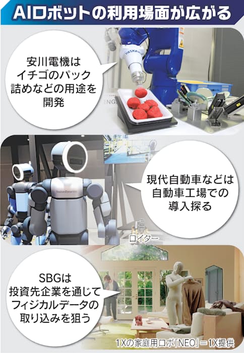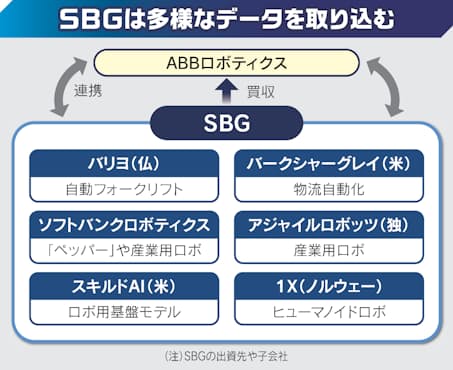 汎用ロボットの競争力の要は介護や物流、自動運転に必要な走行環境など様々な利用シーンから得られるデータの種類と量だ。SBGは出資する新興企業がもつデータやソフトと、ABBロボティクスのハード技術を融合させる。